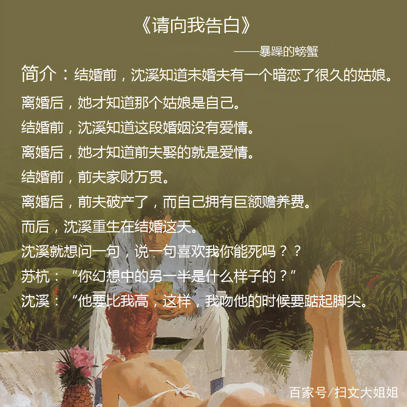 大家好,我又来给大家推荐小说啦。今天给介绍的是“现代重生文”,上天重新再给一次机会,让你重回过去,你会做什么呢?而他/她却只想回到过去,宠她/他爱她/他,不让她/他再受一点委屈。
