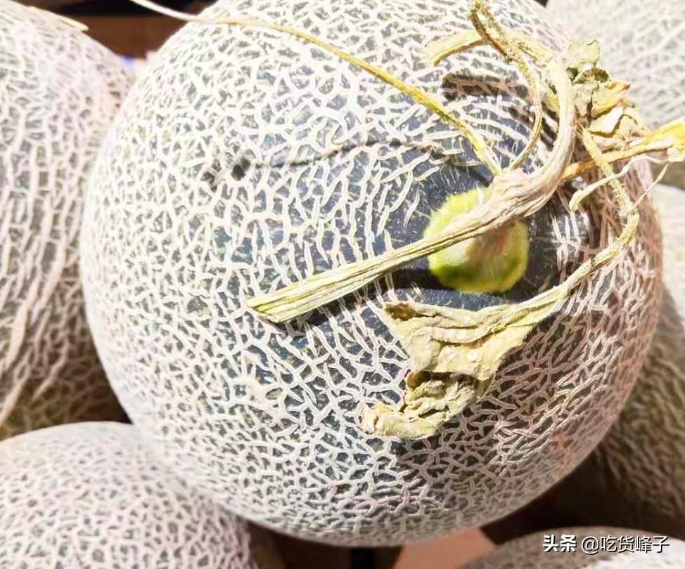 四看瓜蒂,瓜蒂看起来不枯萎,说明这个蜜瓜比较新鲜,刚刚摘下来不久,可以购买。