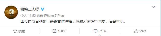 今天中午11时52分,坚挺了19年的《锵锵三人行》没来得及好好和观众道别,只在官微上匆匆留下一句“因公司节目调整,锵锵暂时停播,感谢大家多年厚爱,后会有期。”随即成为微博搜索的禁区。