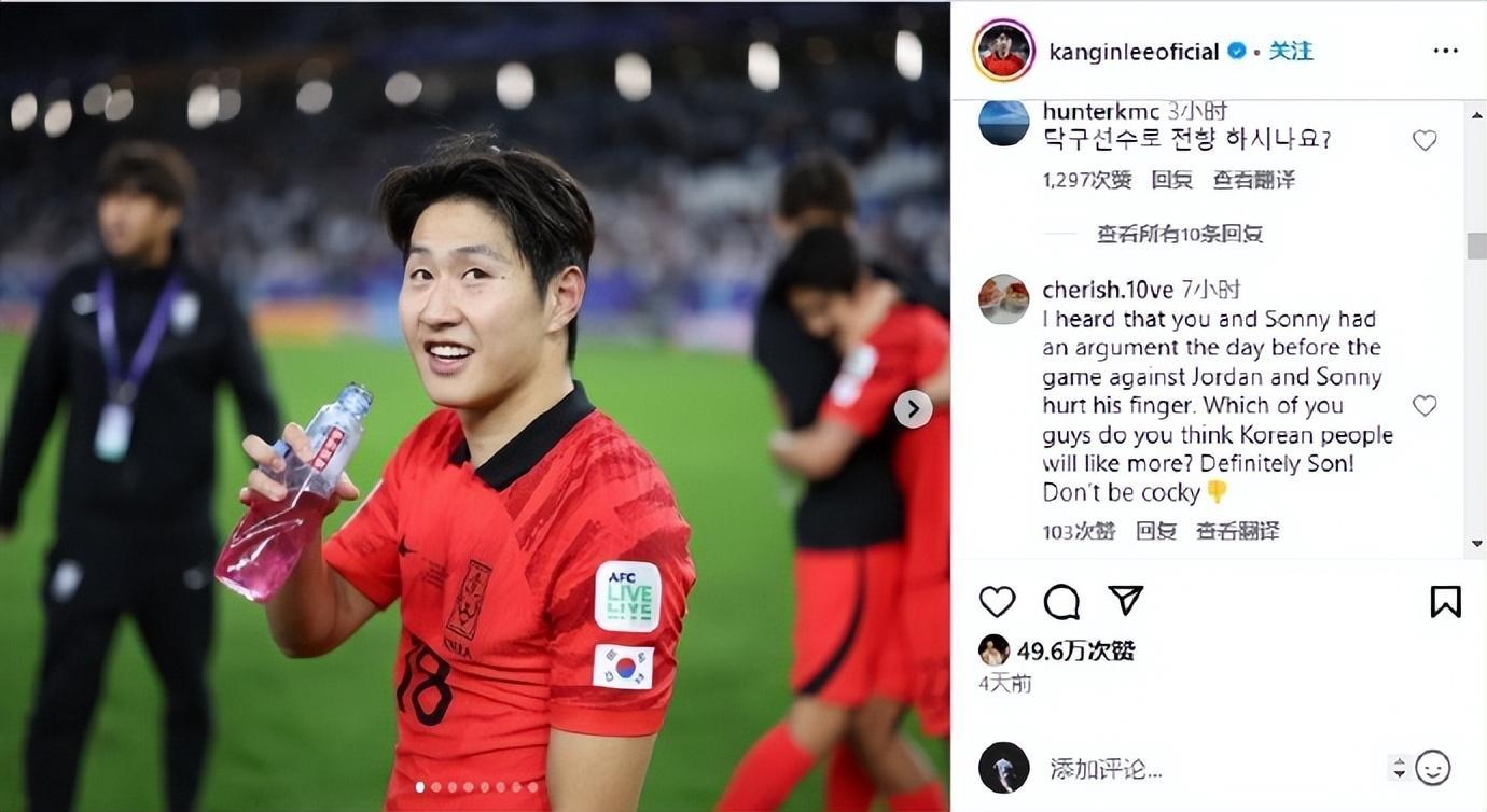 消息曝出后,韩网友在李刚仁最近一条社媒下进行了留言↓