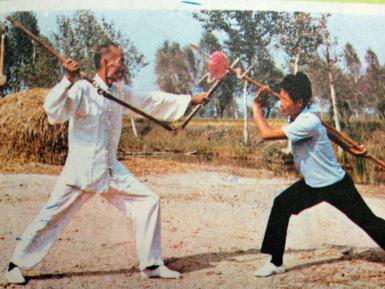 刚才我们也讲到了三节棍和双节棍的历史原型就是我国古代的古兵器‘梢子棍’,在前几期中我们也对其进行过简单的介绍,今天有机会我们就再将其简单的补充的一下。我们讲过梢子棍这种兵器最早在战国时期就已经有与其相关的记载了,但是还有一则传说说是梢子棍又名“盘龙棍”,是宋太祖赵匡胤 当年所开创的兵器,大家可能不知道宋太祖赵匡胤虽然提倡重文轻武但是他自身是一个很厉害的武术高手,据说其曾创“大小盘龙棍”,还流传下来了一套其自创的拳法,名曰“太祖长拳”,一直传承至今。