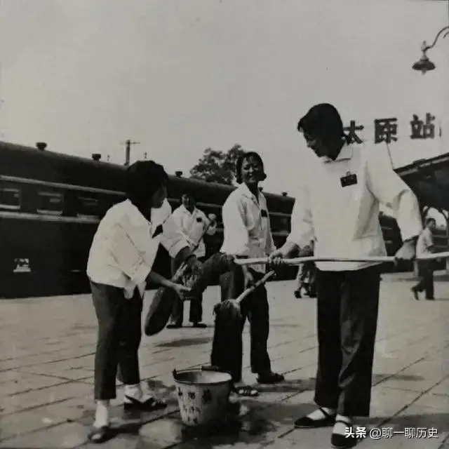 我们今天的六十年代时光之旅,来到六十年代的太原。火车站对于很多人来说,一个充满悲欢离合的地方,同时这里也盛满了我们的回忆,今天我们的太原之旅就让我们从老太原火车站开始吧,这是六十年代太原火车站的员工正在站台上打扫卫生的一张老照片。
