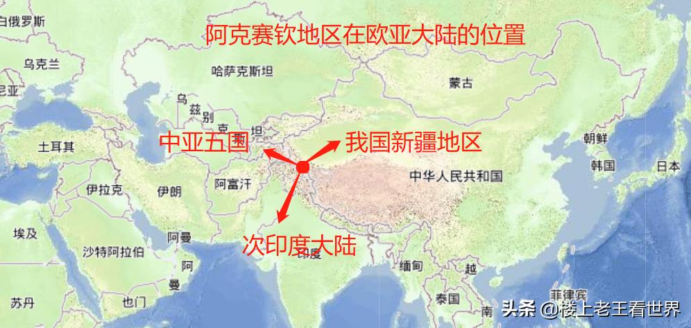 正面看阿克赛钦在欧亚大陆的位置