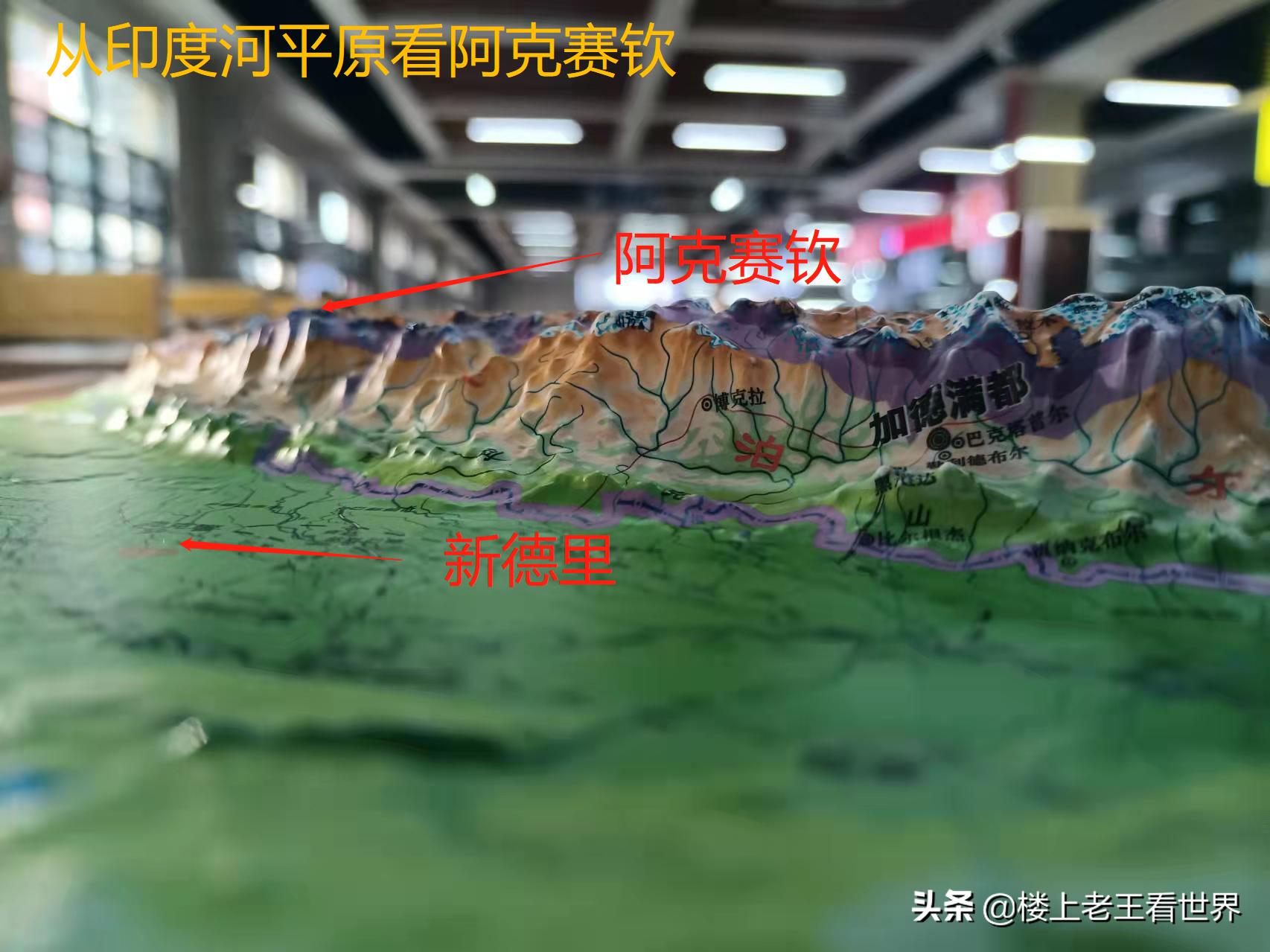 从图上看出,阿克赛钦远眺亚洲心脏地带(中亚五国),约800公里。俯视南亚大国印度首都新德里,约200来公里,地理位置险要,易守难攻。控制阿克赛钦,就会对周边地区制空权有压倒性作用。