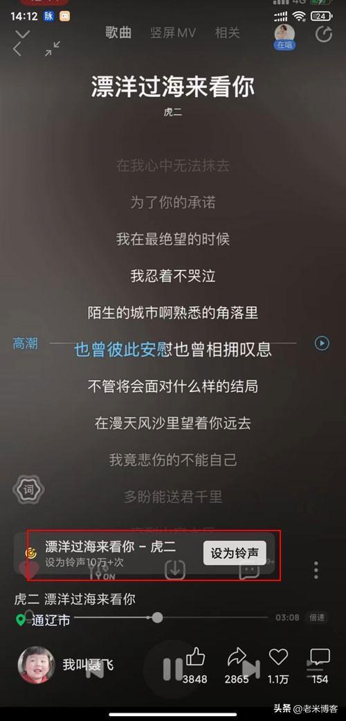 第六步:进入歌曲后,点击【设为铃声】;