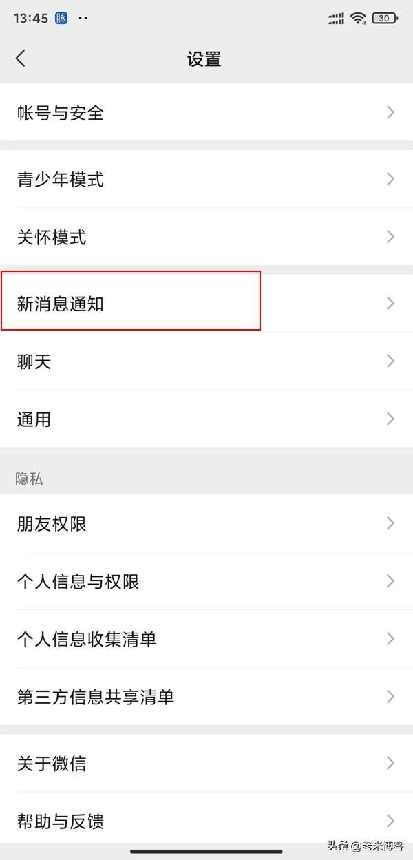 第二步:进入设置界面后,点击【新消息通知】;
