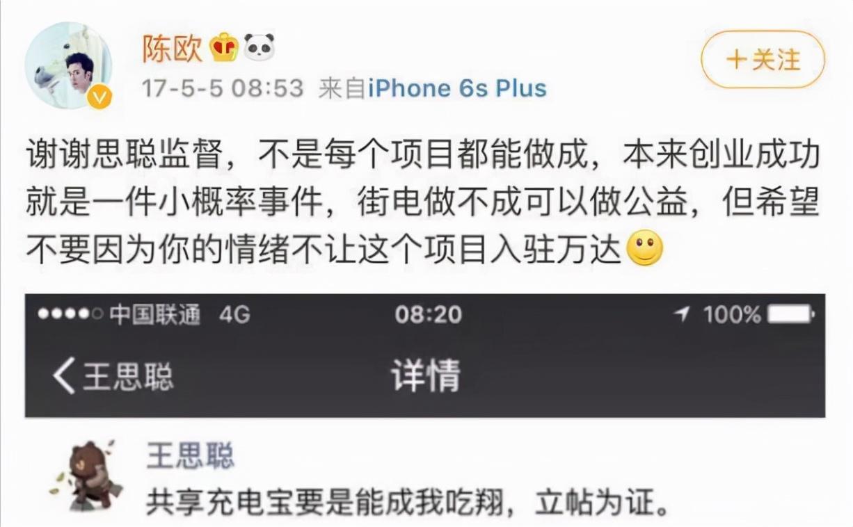 甚至连国民老公王思聪也公然发帖嘲讽,他在朋友圈发帖:共享充电宝要是能成我吃翔,立贴为证。