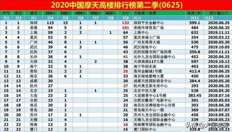 ▲2020年中国摩天高楼排行榜第二季(图源:高楼迷论坛)