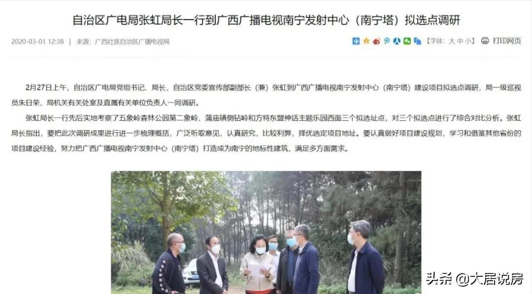 2020年2月27日,南宁有关领导到广西广播电视南宁发射中心(南宁塔)建设项目拟选点调研。