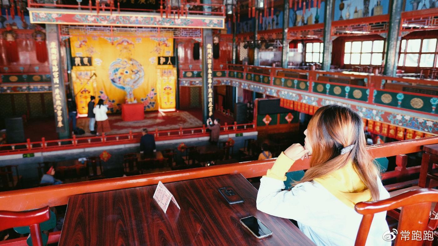 而戏楼里现设茶座客席,满座280人左右刚好。我们坚持不将观众席换成能坐更多人的连排座椅,也是为了保持住这种听戏的氛围。”