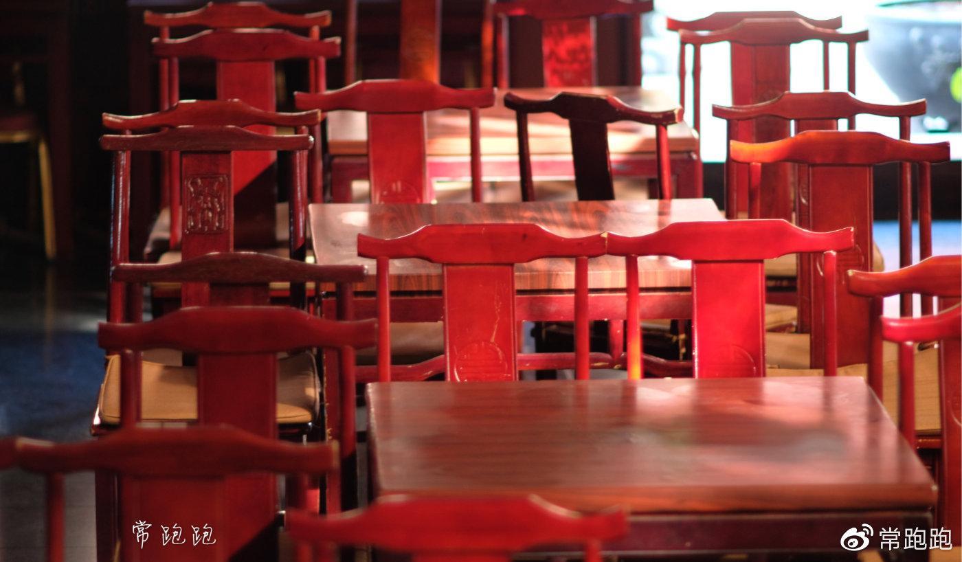 从戏楼茶座的桌面上,清晰可见一个叠一个的茶杯印子,就能看出现在的湖广会馆,依然承袭着旧时的精彩。
