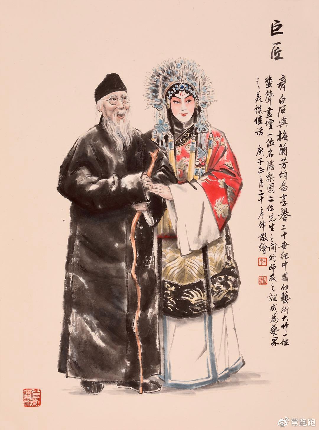 《巨匠》(图一):齐白石与梅兰芳均为享誉二十世纪中国的艺术大师,一位蜚声画坛,一位名满梨园。二位先生之间的师友之谊,成为艺界之美谈佳话。
