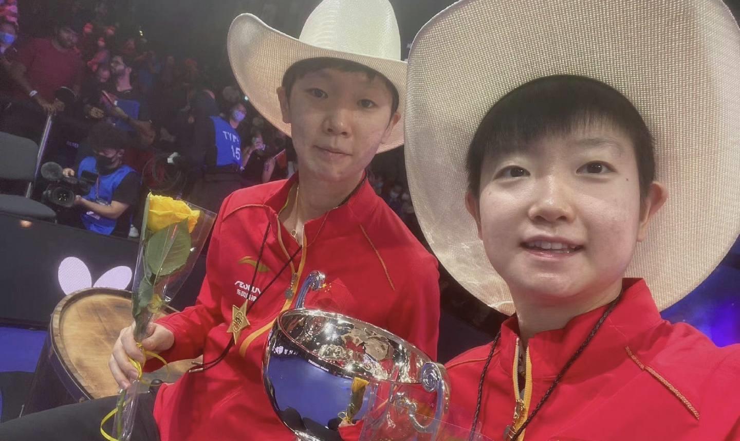 王曼昱的反手、孙颖莎的正手,成为两人得分的重要武器,两人始终在前三板上压制对手,导致日本队的早田希娜失误不断。最终,王曼昱和孙颖莎成功拿到女双冠军,继2019年之后,再次在世锦赛女双冠军奖杯上留下了自己的名字。有趣的是,在赛后采访环节中,孙颖莎和王曼昱的“你说”、“你来”互相推让的语言,成为本场比赛最大的笑点。这是小魔王孙颖莎在本次比赛的第二枚金牌,此前,她和王楚钦一起拿到了混双冠军。
