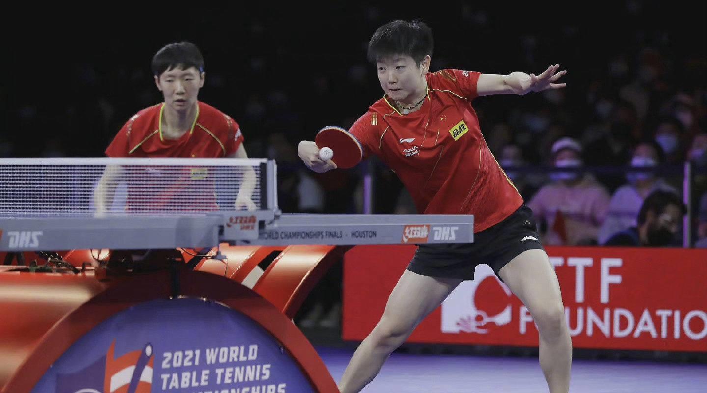 北京时间11月30日,2021休斯顿世乒赛进入最后一个比赛日的争夺。在率先进行的女双决赛中,中国队的王曼昱和孙颖莎直落三局击败日本队的伊藤美诚和早田希娜,拿到本届世锦赛女双金牌,这也是中国队在本次比赛中拿到的第二枚金牌。值得一提的是,在2019年世乒赛女双决赛中,孙颖莎、王曼昱同样夺得冠军,而当时与她们隔网相对的正是伊藤美诚和早田希娜。两届世锦赛女双决赛,王曼昱和孙颖莎实现了对日本队组合的两连杀。