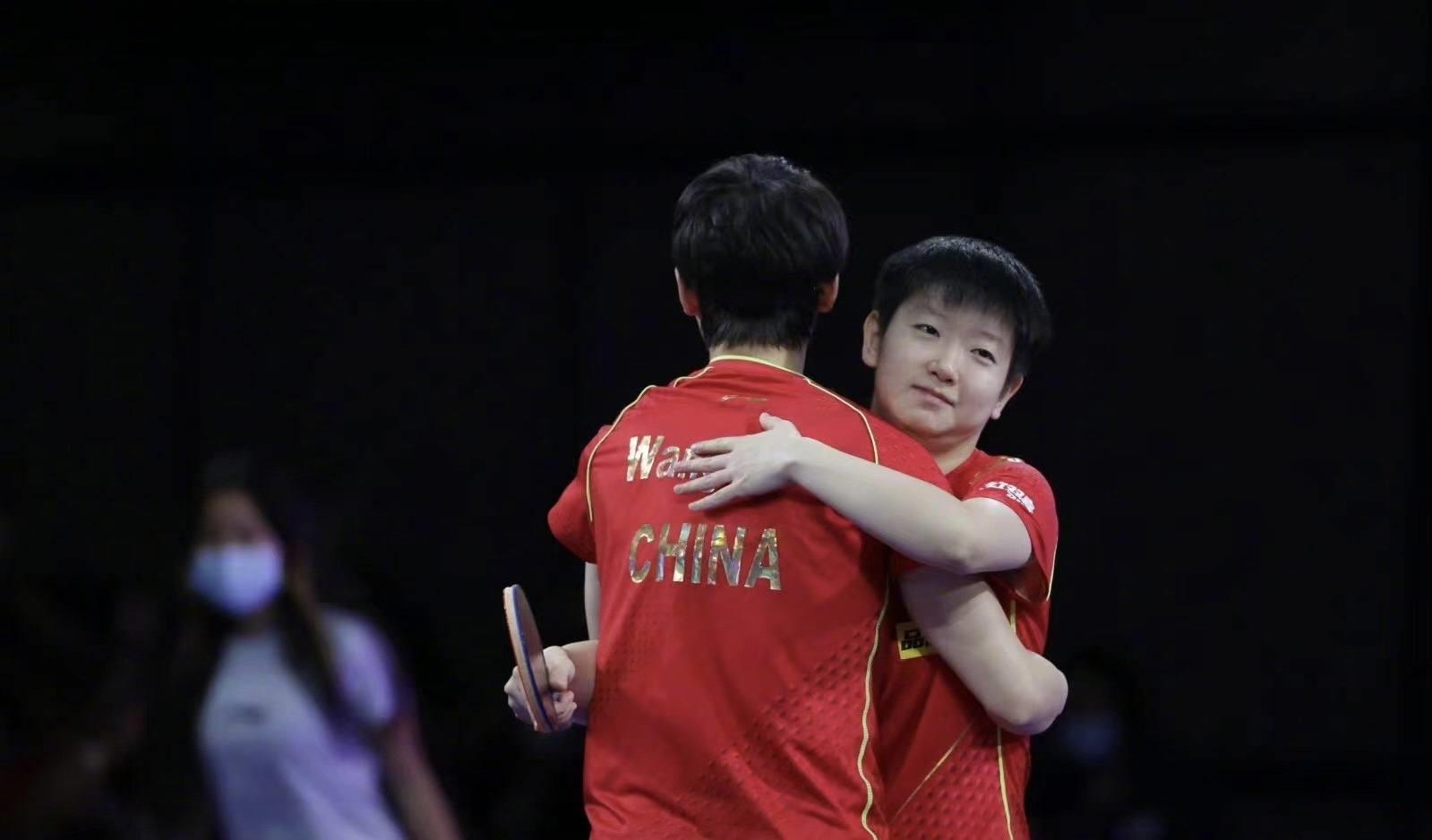 在拿到冠军之后,孙颖莎和王曼昱也正式确立世界第一女双的地位。本场女双决赛,两对组合显然有备而来,王曼昱和孙颖莎此前在世锦赛的备战过程中,就对日本队的早田希娜和伊藤美诚进行了重点研究。而日本队这对女双整体实力也很强,她们与石川佳纯、平野美宇不相上下。由于国乒部分球员已经完成了比赛,大家都赶到女双决赛现场,为王曼昱和孙颖莎加油助威。
