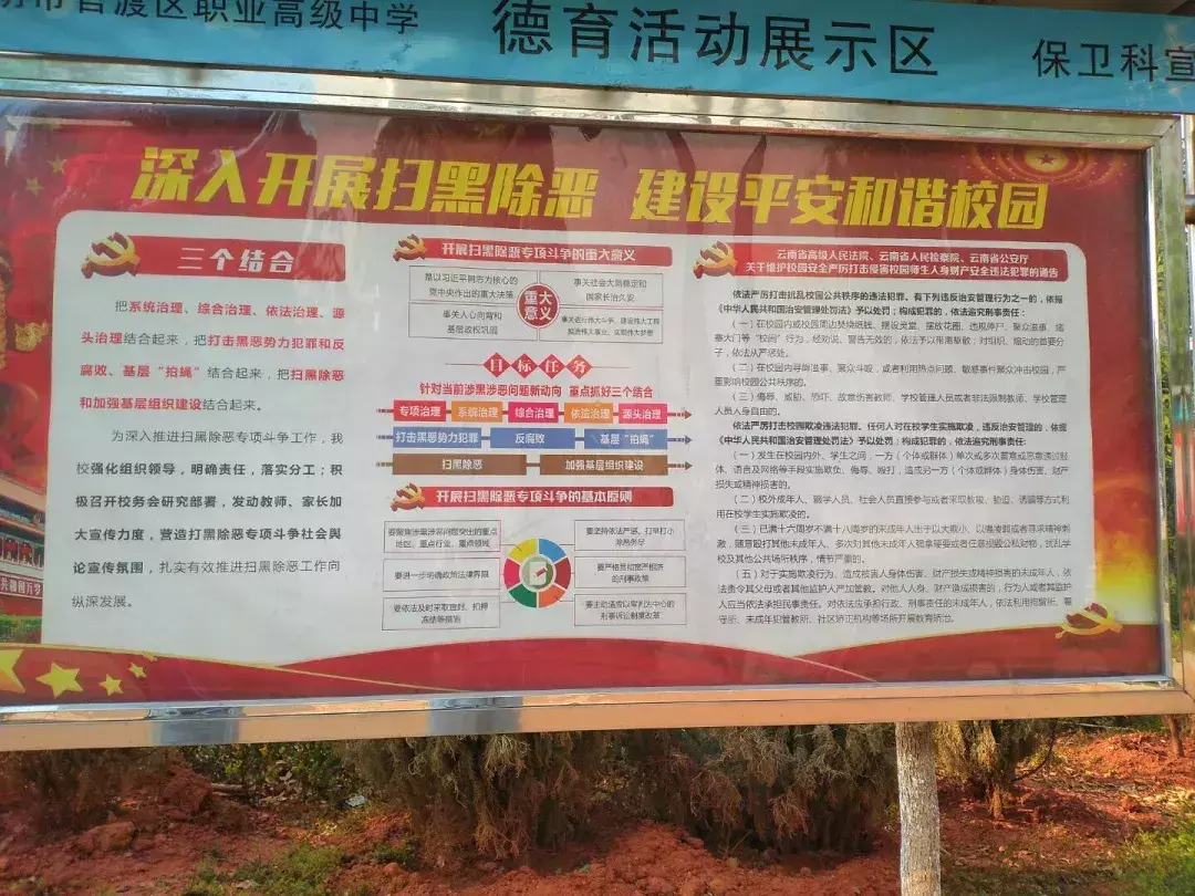 近期,官渡区职业高级中学开展“扫黑除恶——坚决遏制校园欺凌”主题教育活动,有效创新形式,通过主题班会、手抄报等形式,向广大学生宣传“扫黑除恶”相关知识,在学校内部点亮扫黑除恶宣传“明灯”。