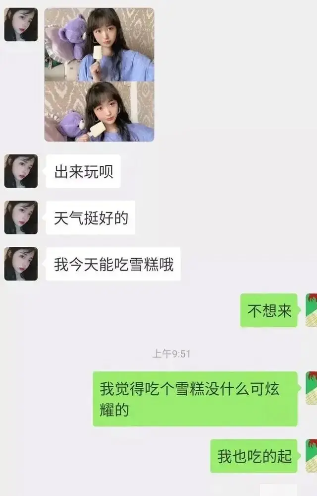 只怪自己直男癌,这么明显的意图,居然只理解了表面意思。小编就很明白小姐姐想干嘛。小姐姐可能还想吃冰淇淋。