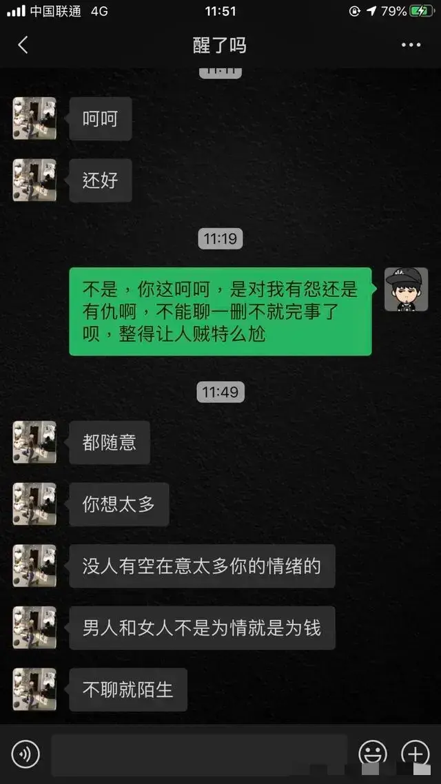 男女聊天不为情就为钱。这句话精辟。