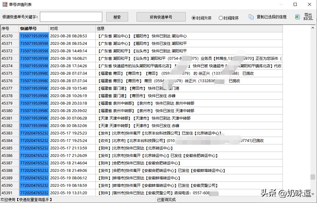 快递查询工具批量查询快递单号,一键生成单号列表,管理快递信息