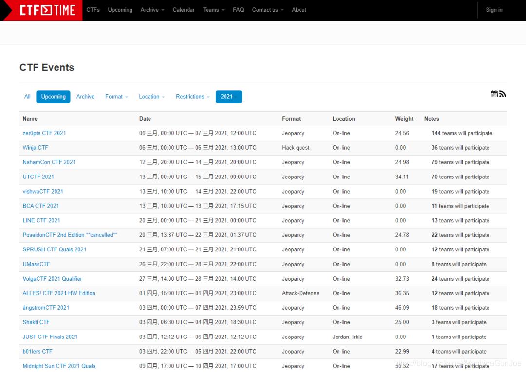 有人可能想说了,这么多CTF哪里关注的过来,别急,推荐给大家一个好东西:CTFTime