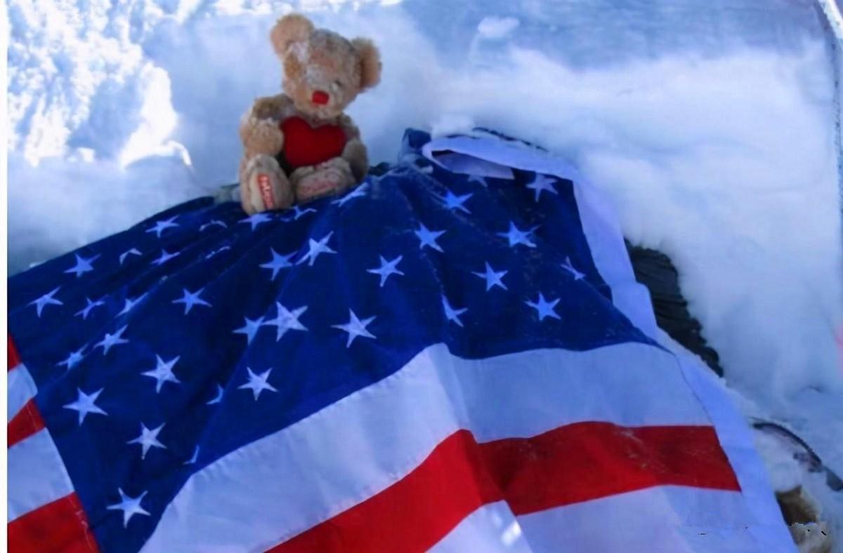 因为情况不允许,Ian只能改变主意,用美国国旗盖住弗兰西斯的遗体,在国旗的边上还放上了一个胸前带有红心的小熊。