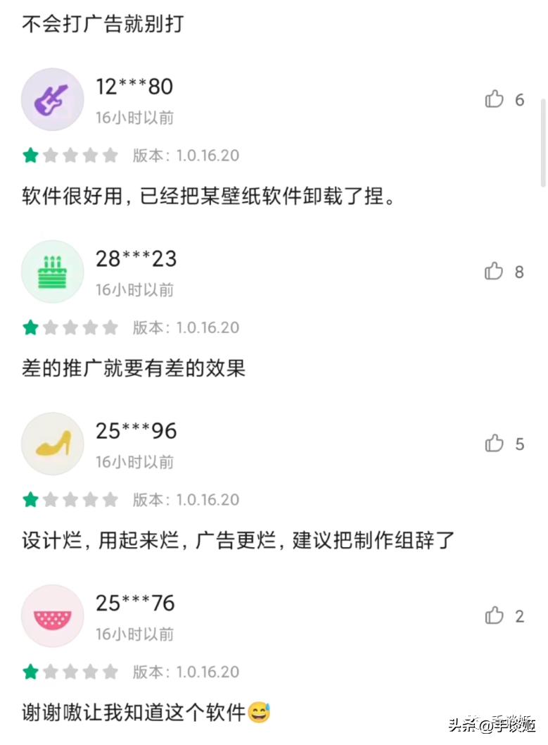 另外一个可能的原因是,作为一个APP推广的商单,视频并未起到良好的宣传效果,反而是激起了不少人去给这个“懒设计”APP打差评,可以说完全是反效果了。