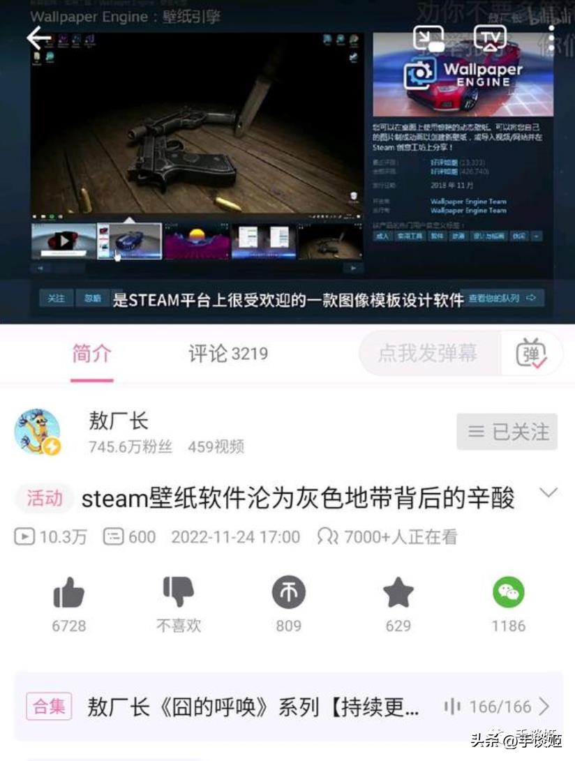 好奇心驱使,手谈姬就去B站搜了下敖厂长的视频,看到标题叫《【敖厂长】Steam壁纸软件沦为灰色地带背后的辛酸》,跳着看了下视频,全长大约八分钟,其中三分之一是在讲Steam的知名软件wallpaper engine的,后面三分之二基本在讲一款名叫“懒设计”的壁纸软件。