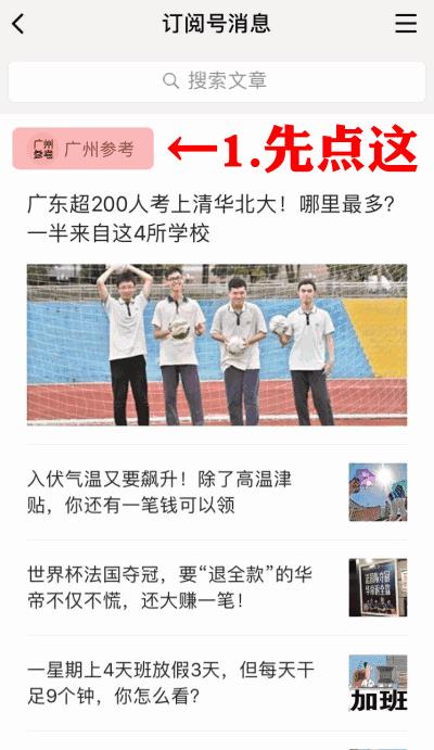 1、打开微信订阅号列表,找到“广州参考”推送卡片,点击“余下4篇”提示,即可查看今天全部精彩内容;