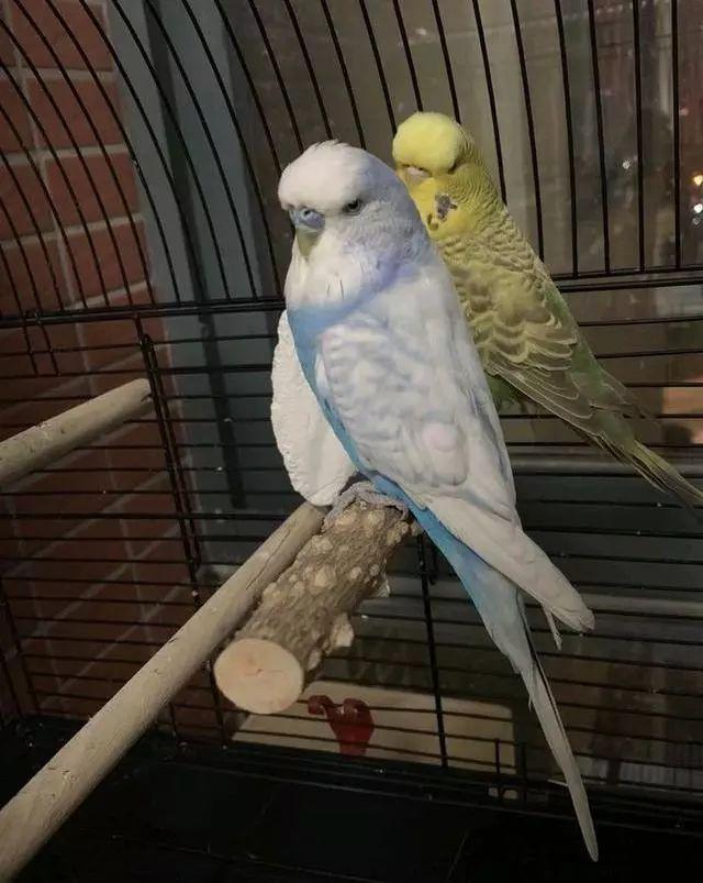 两只普通虎皮鹦鹉