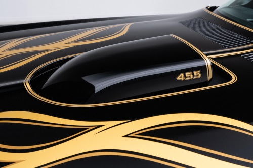 1976年的庞蒂亚克火鸟属于该车系的第二代,由于火鸟车型每年都会有更新,因此1976年也属于单独的年代款。而1976年这台车的最大变化是增加了W50外观包,即你看到的这些贴纸设计。庞蒂亚克火鸟搭载L75 7.5L 455 V8发动机,由于后续排量法规的限制,该发动机在1976年之后不再出现在火鸟车型上,同时也让该年份的火鸟价值有所提升。