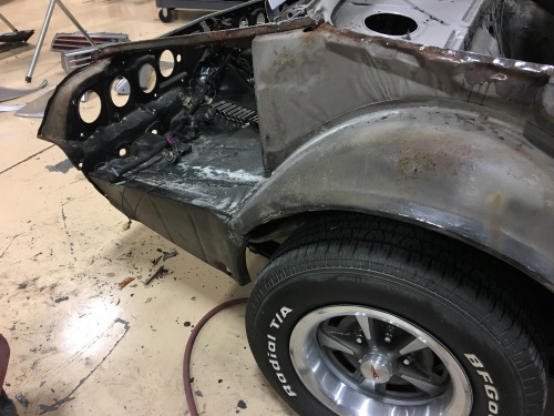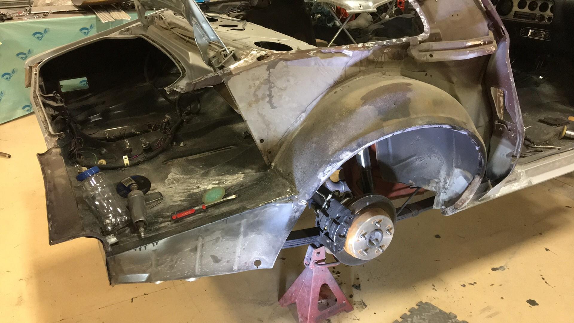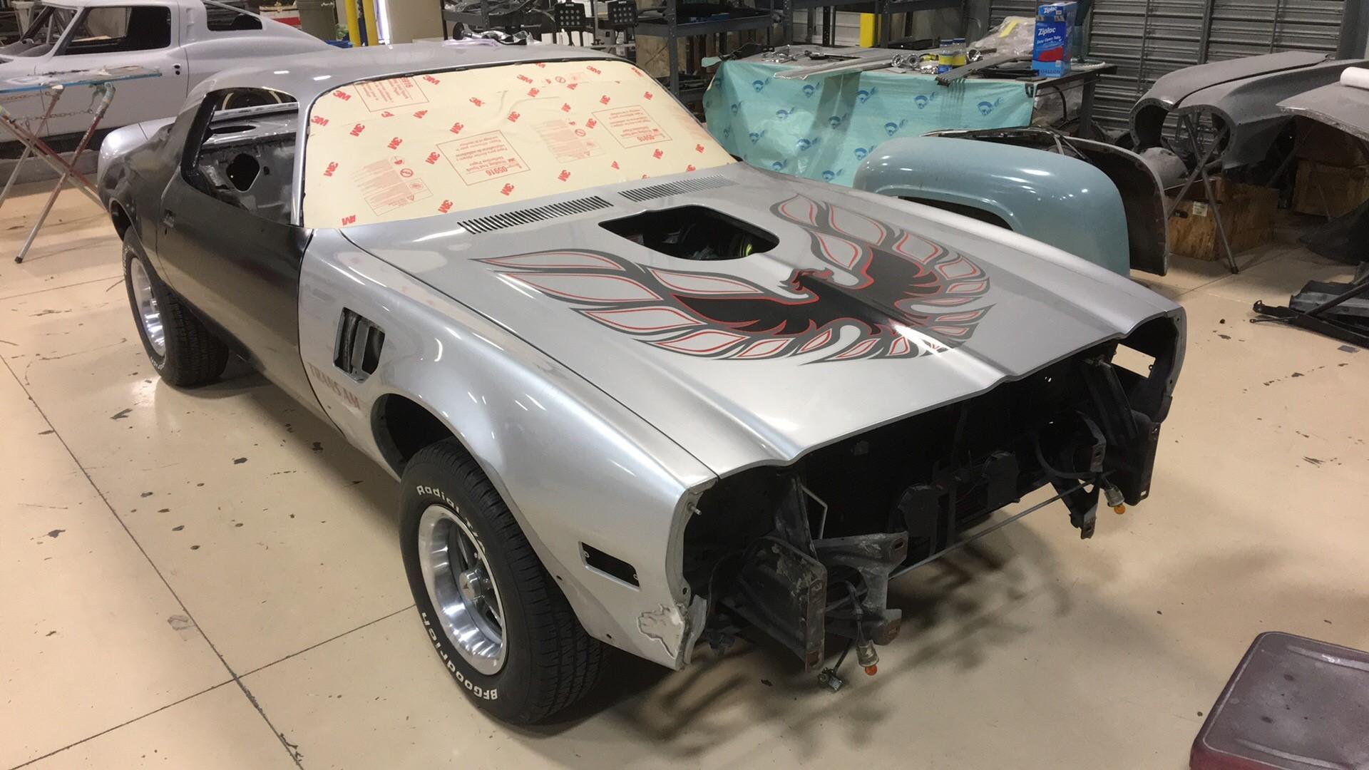 底盘部分的悬架、副车架都是全新的零件,因此没有太多问题需要解决,Sam找到一家专门修复经典车车身的公司,想对这台1976款庞蒂亚克火鸟进行车身的二次修复。