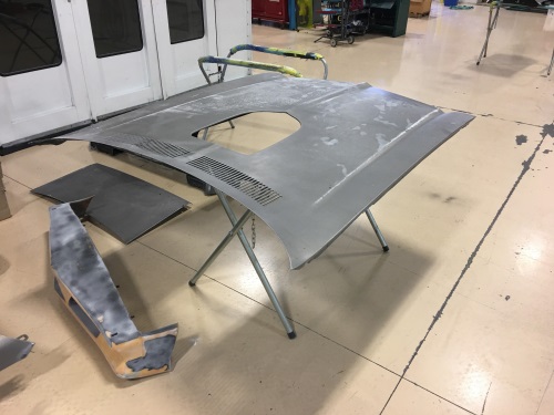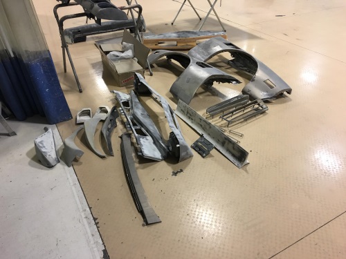 下一步需要对车身进行喷漆,而在喷漆之前需要对车身进行整平和打磨,此时车身零件已经准备完毕,但缝隙还没有进行对其。