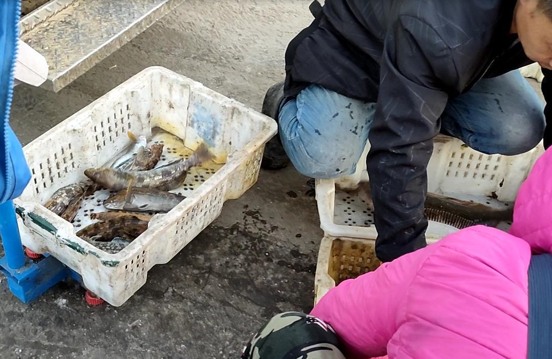 我简单问了一下,扇贝和海螺都是45一斤,来大连人讲话除了壳没啥东西啊。所以我感觉价格有点贵。鱼没问,因为我自己钓鱼吃鱼都吃磕了。但是海鲜很新鲜。再说啥东西都是物以稀为贵。鱼收获得少也只能卖高价补贴人工和油耗。一般像这种新鲜鱼都是专门有车来收,进入饭店和海鲜专柜得。