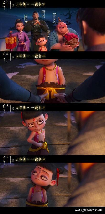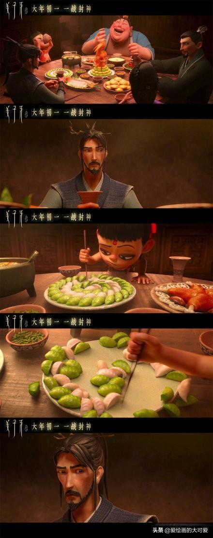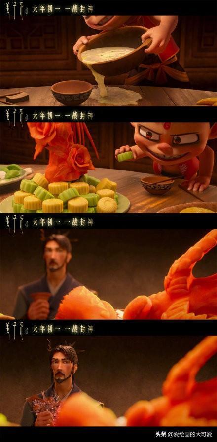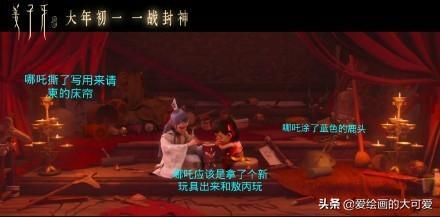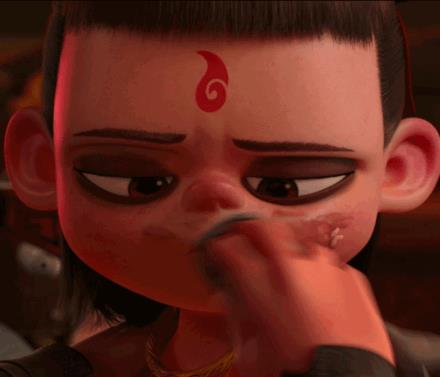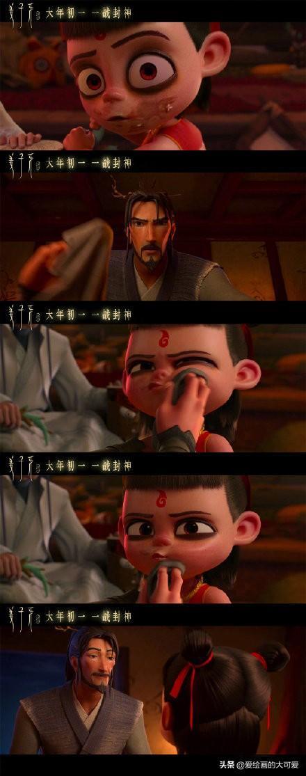 哪吒脸上的油渍见到敖丙都不擦,这个细节很有意思,他的性格真是粗糙到好朋友来自己家玩都不收拾一下,就是看准了敖丙绝对不会嫌弃他。可是哪吒在敖丙身旁的时候,都在笑,小编觉得哪吒是真的很喜欢敖丙这个朋友,小孩子喜欢一个人的心思就明晃晃放在那,是藏不住的。