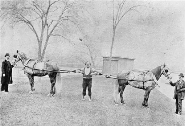 据记载,他的一根手指就能举起200多斤的重量。在一次和马匹较量的比赛中,路易斯双手各拉住2匹马,在4匹马合力之下,路易斯居然纹丝不动。