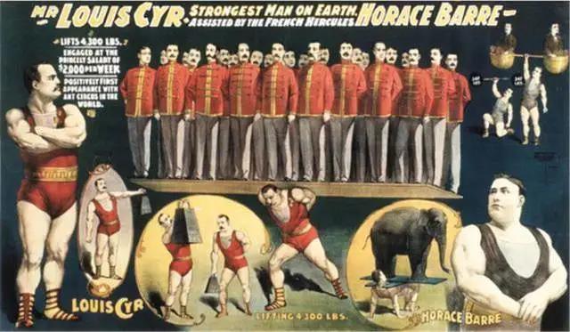 最离谱的是,路易斯扛着一块木板,木板上站了整整18个成年男子,接近一吨的重量都没能将他压倒,这个纪录百年来也无人能打破,当时的人们还给路易斯画了宣传画。