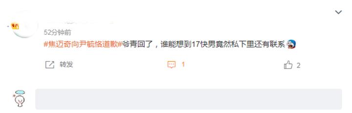 对此,有网友评论:爷青回了,谁能想到17快男竟然私下里还有联系。