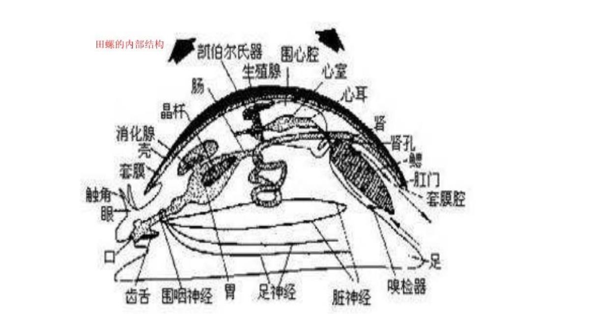 从下图的田螺内部结构图中,可以知道田螺食用的部位主要是它的肉质足。(就像是杀鸡一样,鸡的内脏部位,肯定是得进行清洗一番才会进行加工成美味佳肴。)