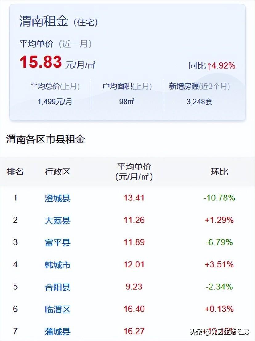 更新下【渭南】各区最新租金水平,数据仅供参考(来自中国房价行情网)。