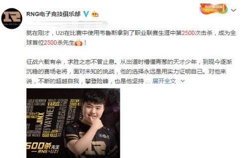 他就是UZI,在2018年4月对战Snake的比赛中(现如今的LNG),UZI就完成了2000杀的成就。值得一提的是,在2019年8月对战DMO的时候,UZI完成了2500杀的成就。这些老选手就是凭借着对电子竞技的热爱,才坚持到现在。二个人的比赛都是看一场就少一场,希望大家且看且珍惜。不知道大家如何看待Faker完成联赛2000杀成就,不妨评论区留言讨论。