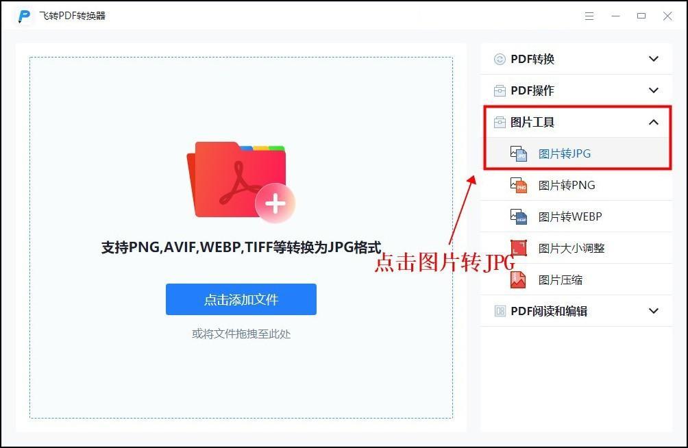 首先,打开软件,点击【图片工具】—【图片转JPG】,把文件添加进来。