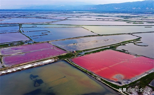 运城七彩盐湖除了含有丰富的盐分,还有大量的钠、钙、镁等元素,在夏秋季的高温和蒸发下,盐湖浓度偏高,湖面往往呈现出色彩斑斓的美景,成为这里一道独特风景画。