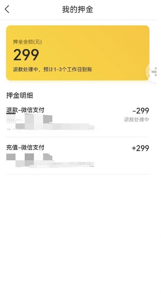 3.等待到账(只等了几分钟,押金就退回来啦)