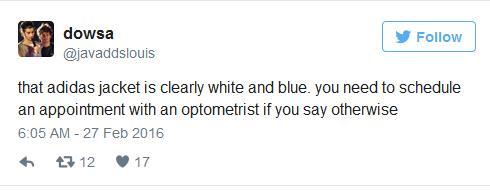 而新一轮的撕逼大战也愈演愈烈,逐渐蔓延到了 twitter(推特)等社交网站,网友们为这衣服的颜色操碎了心。