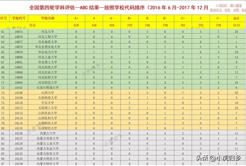 全国高校第五轮学科评估结果即将公布,本文按照学校代码顺序,即31个省、市、自治区高校代码顺序,把460所高校第四轮学科评估结果总结一下,这篇是补充文章,方便对照查看,共9张图。