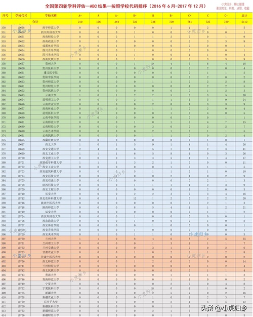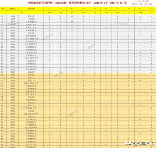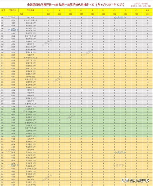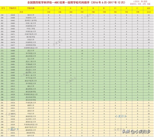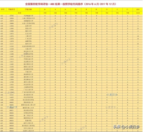全国高校第四轮学科评估ABC结果完整版(按学校代码排序)