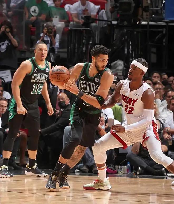 东决面对东部第一迈阿密热火,常规赛热火并不以进攻见长,队内囤积了大批防守悍将,以防带攻。而季后赛中吉米巴特勒突然爆发,而且持续高效输出。热火也顺势将巴特勒作为进攻箭头,增加其个人单打。效果也显而易见,热火一路将老鹰、76人斩于马下。本轮战况相当惨烈,双方你来我往,一直打到抢七大战。生死战中,塔图姆仍值得信任。贡献26分+10篮板+6助攻,率队挺进总决赛。獭兔本轮场均贡献25分+8.3篮板+5.6助攻+0.9封盖+1.1抢断+46.2%投篮命中率+35.3%三分命中率。就数据及效率而言,本轮热火并未能对獭兔形成有效防守,也就无法取得胜利。塔图姆也得以全票拿下首座”伯德杯”。