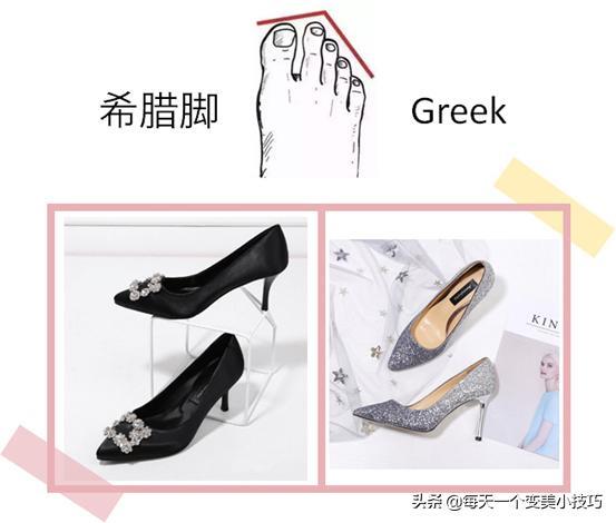 2.希腊脚有一个特点,就是它的第2个脚趾会比较长,大脚趾和第3个脚趾的长度基本水平这种脚型的话,比较推荐选择尖头鞋,这样可以给第2个脚趾更多的空间。