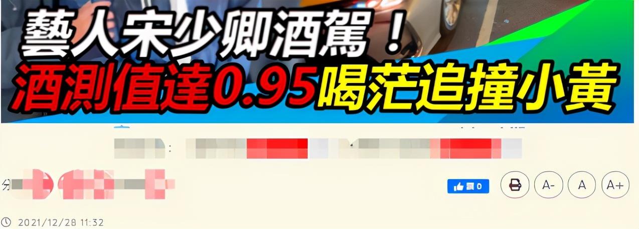 原来是因为宋少卿屡屡因为酒驾的问题,而被警方逮捕,如今是他第5次酒驾被捕了,就在近日凌晨2点多的这个时间点,醉酒的宋少卿开车时直接撞上了前面一辆等待红绿灯的黄色出租车。出了这样的交通事故,警方很快就赶到了现场,经过检查发现宋少卿的身上当时就散发着一股非常强烈的酒气,一番检测过后,果然酒精含量严重超标,达到了0.95mg/L。最后,当地警方依法以公共危险罪将其逮捕归案。
