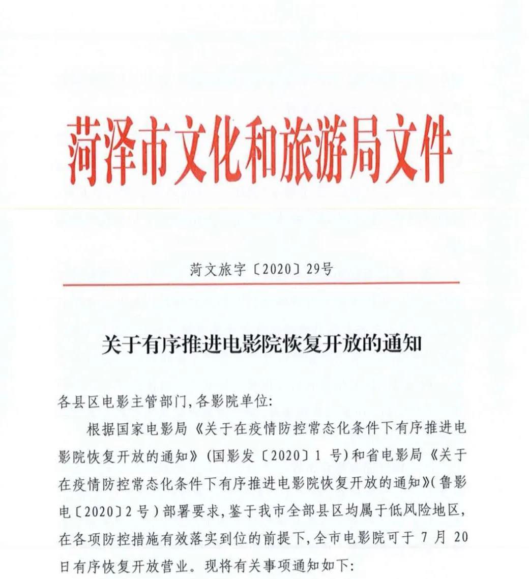 菏泽的小伙伴,您可以带上家人、朋友到身边的影院看电影了。
